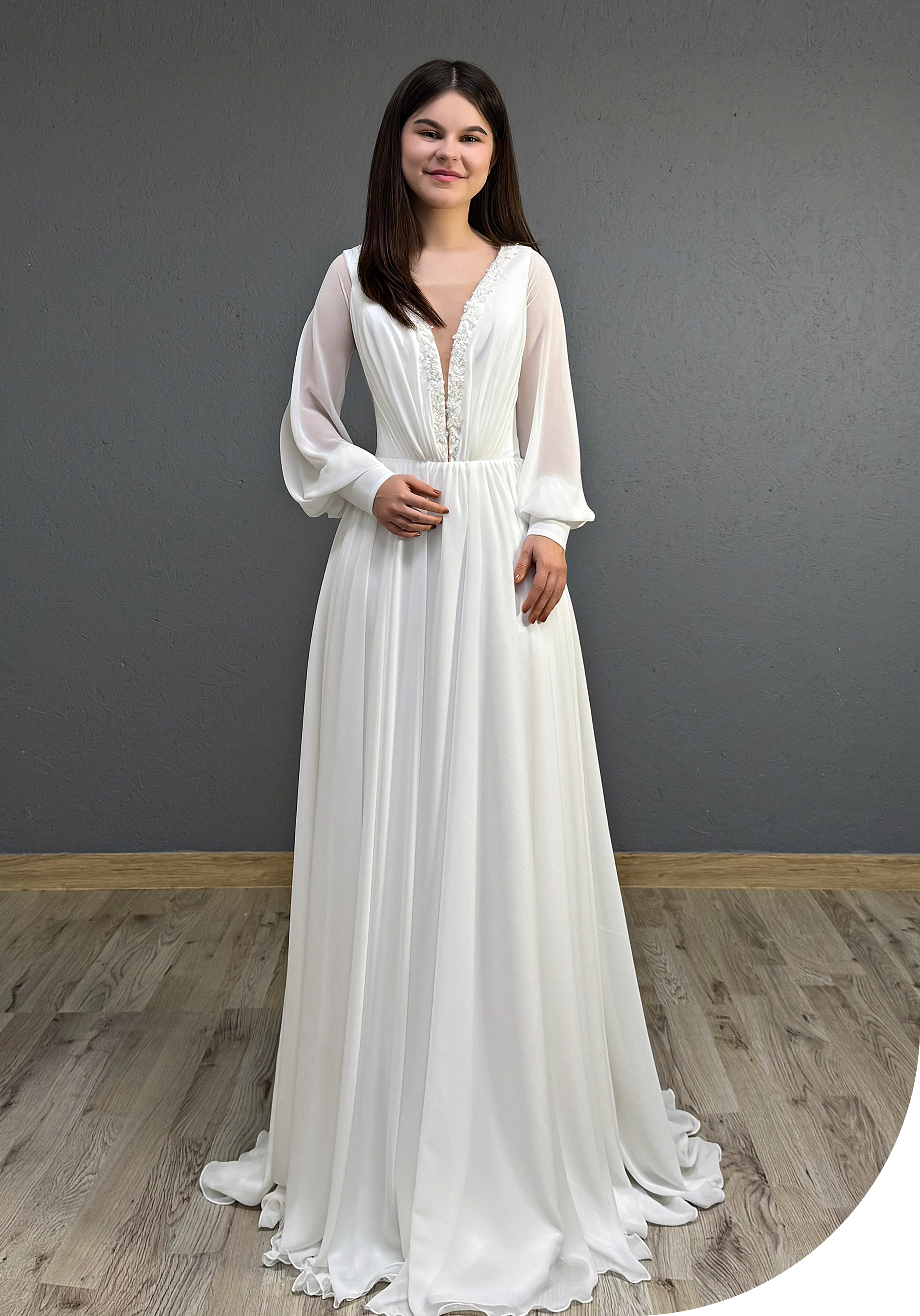 Кожна сукня проходить трирівневий контроль якості: від вибору тканини до фінальної примірки. Ми працюємо з нареченими в Україні й більшості країн Європи, гарантуючи своєчасне виробництво та сервіс світового рівня. Наш пріоритет — зробити процес вибору сукні легким, а результат — ідеальним для вашої історії кохання.